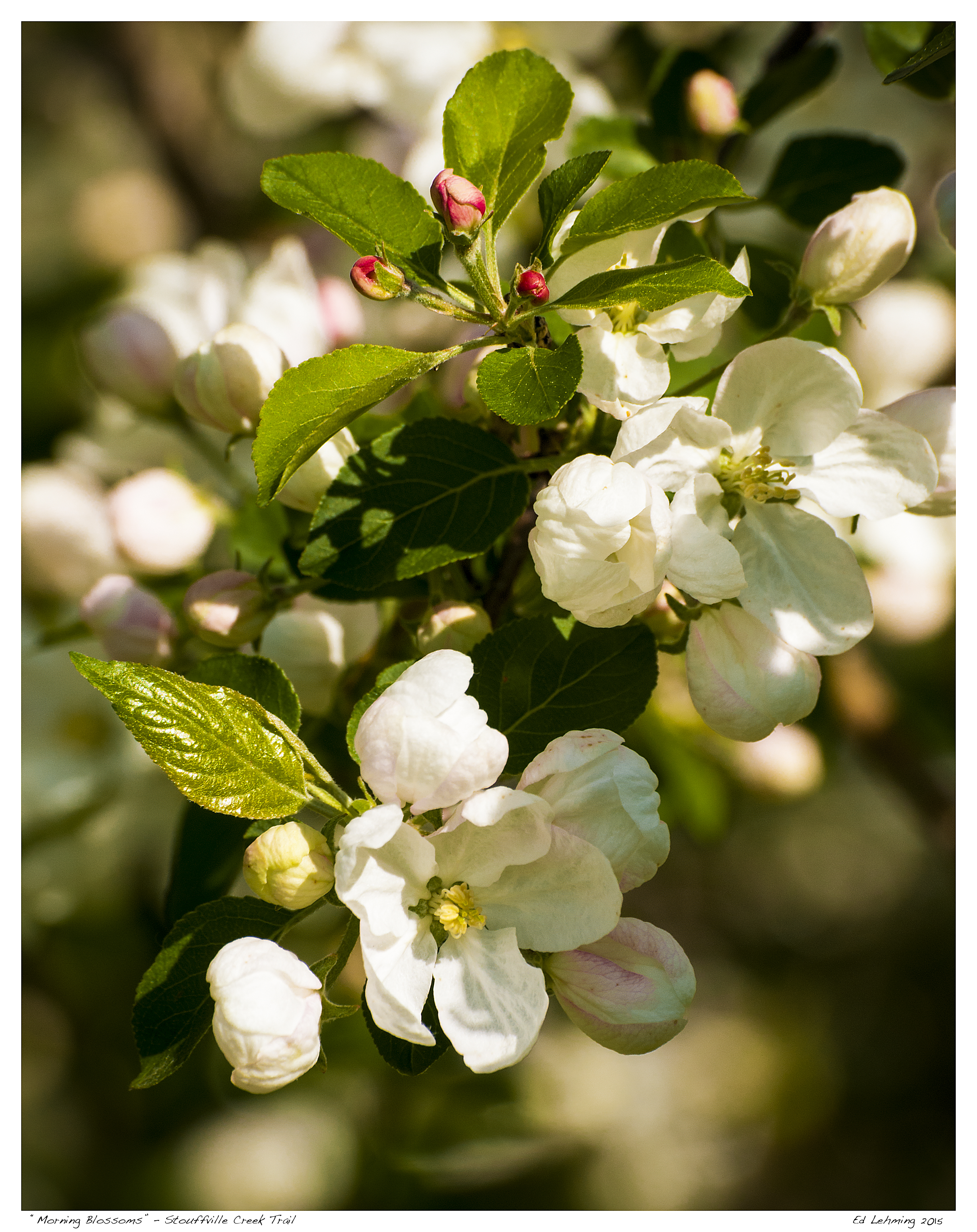 I went for an early morning walk this morning and was greeted by yet another gift of spring – a beautiful crab-apple tree loaded with delicate pink-white blossoms. The sun was just up and provided a wonderful soft light. I tried to keep as much of the flower-head in focus while keeping the background soft.