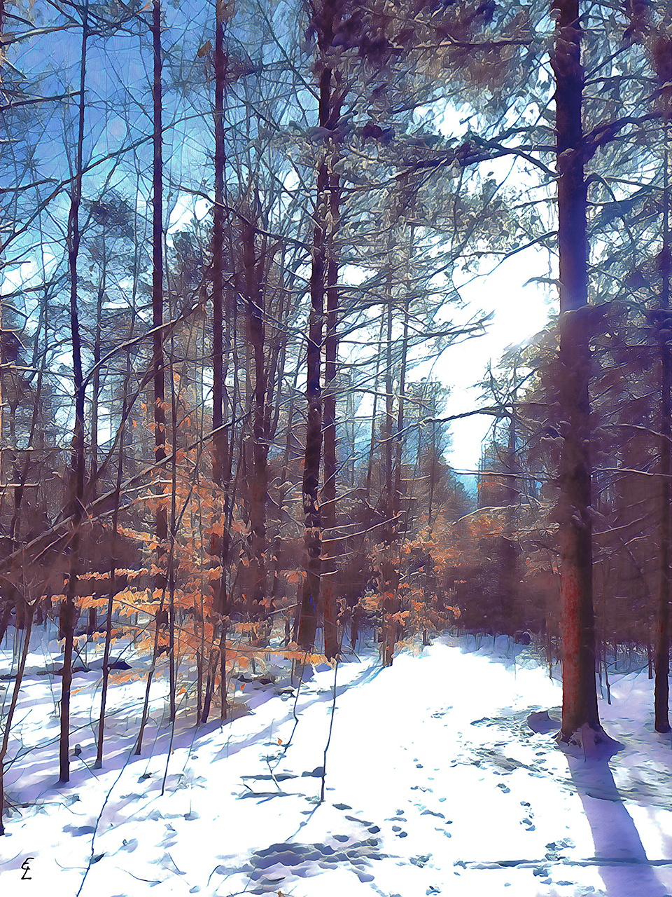 The sun is now a bit higher in the sky, and If I plan my hike, much of it is spent with the sun on my face. It warms me and puts me into a deeper sense of peace. The mid-winter sun is warm but soft, making many of my photos a bit more dreamy. I’ve enhanced this effect in my recent ‘re-imagined’ series of images to try to communicate this more deliberately. When I look at the resulting images it brings me the same sense of peace that I get when I’m out hiking and I’m hoping this translates to those reading these words and viewing my images.