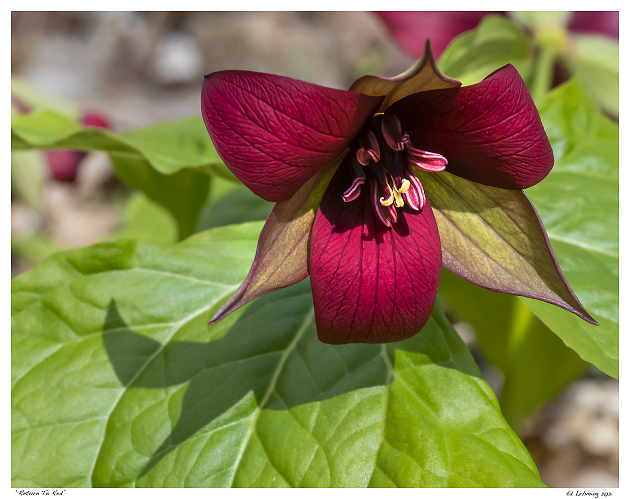 I’ve found myself returning to the same spots, checking on the progress of the trilliums I photographed days and even weeks prior. On those visits I’ve had the rare opportunity to re-photograph some of them, in different light or from different angles. Often, I find myself in the midst of the editing process and wishing I had done something slightly different. This year I was able to do just that; return for a second chance at the same shot. Thus the title for this image, “Return to Red“.
