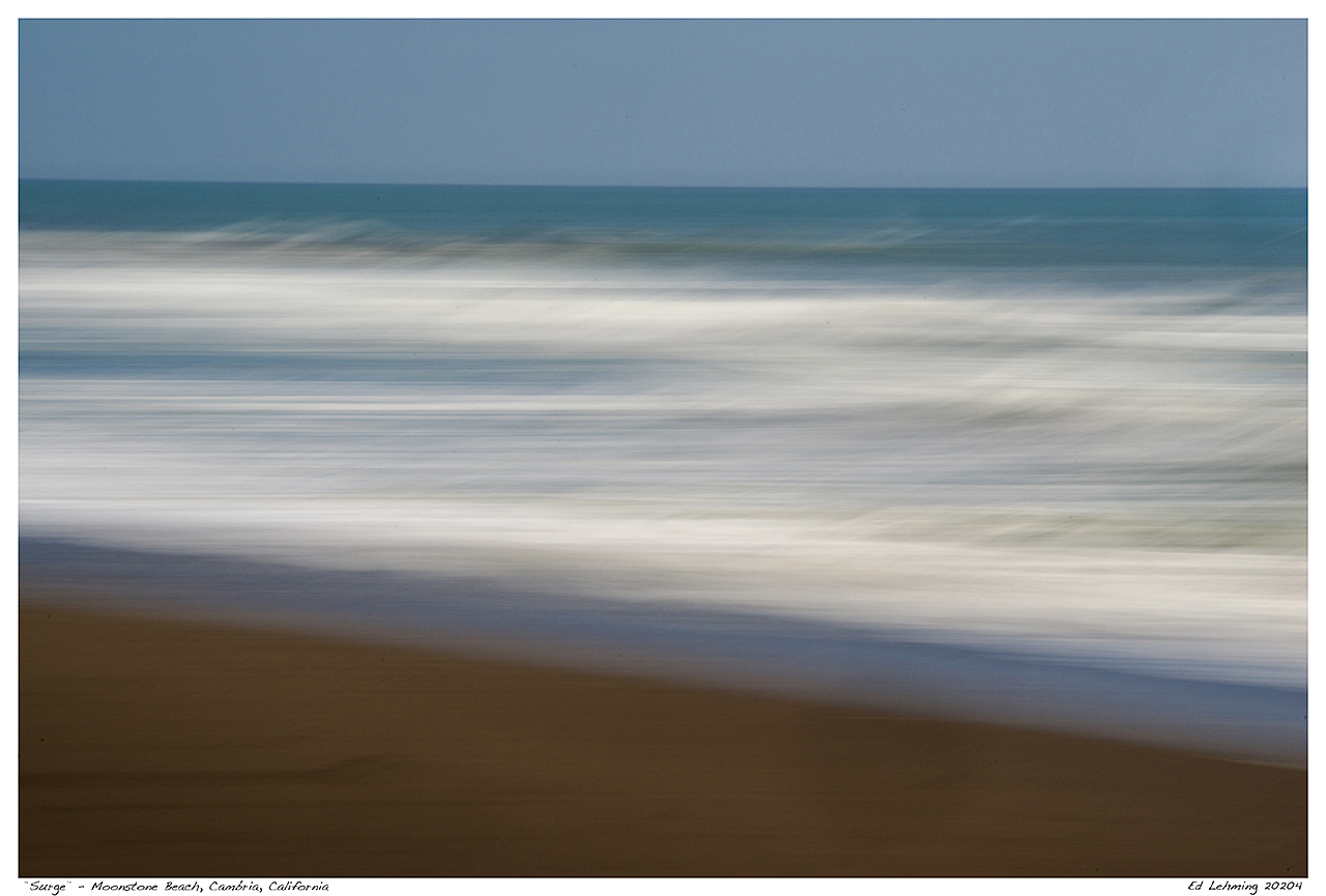 I love water. I love how it moves, the sounds it makes, and the constant sense of being a living thing. I also like to accentuate movement by adding movement of my own. Intentional Camera Movement (ICM) is a technique that I have used many times in forest scenes and a few seascapes. On this day, the light was subdued enough that I could get good results without adding neutral density filters or any other accessory to get pleasing images.