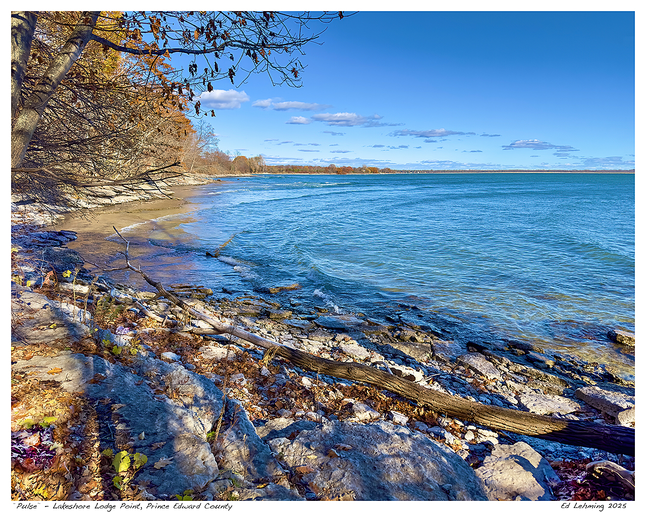 “The final sunny fall day before the snow arrives and the lake pulses in anticipation, as if aware of the coming change, filling the bay with echoes of its life” – Ed Lehming