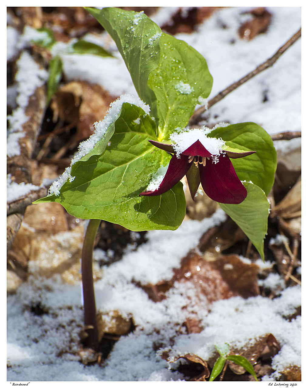 “After a mid-April snowfall, even the plants seem hesitant to re-open.” – Ed Lehming