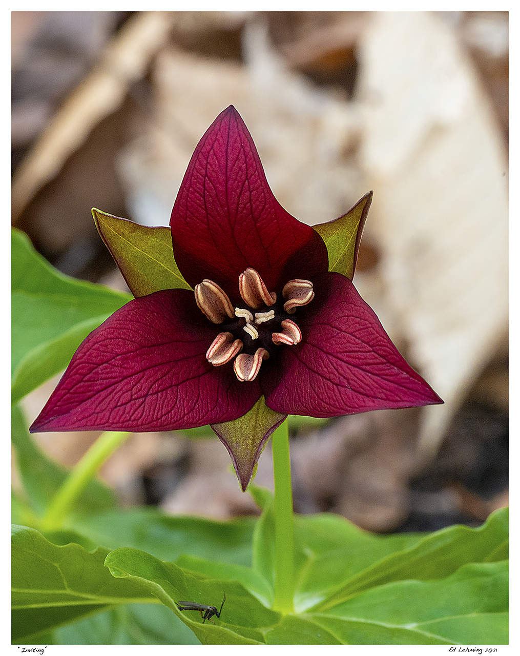 Sometimes, it’s what I don’t see that makes an image interesting, and provides me with a title. When I was out on Saturday, enjoying a few of the early Wake-Robins, I set up to make an image of this specimen. My process is generally the same: find a good angle, adjust for lighting and composition, carefully focus on the details that I want to highlight, and snap the shutter.