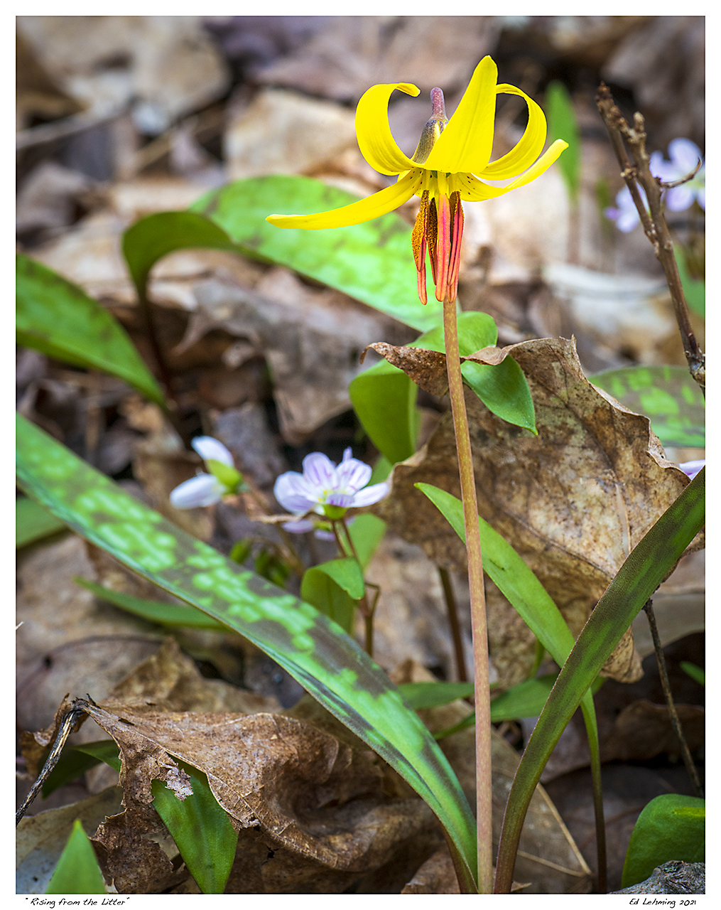 “It’s spring, and beautiful tones of yellow, in all shapes and sizes, return once more to the forest floor.” – Ed Lehming