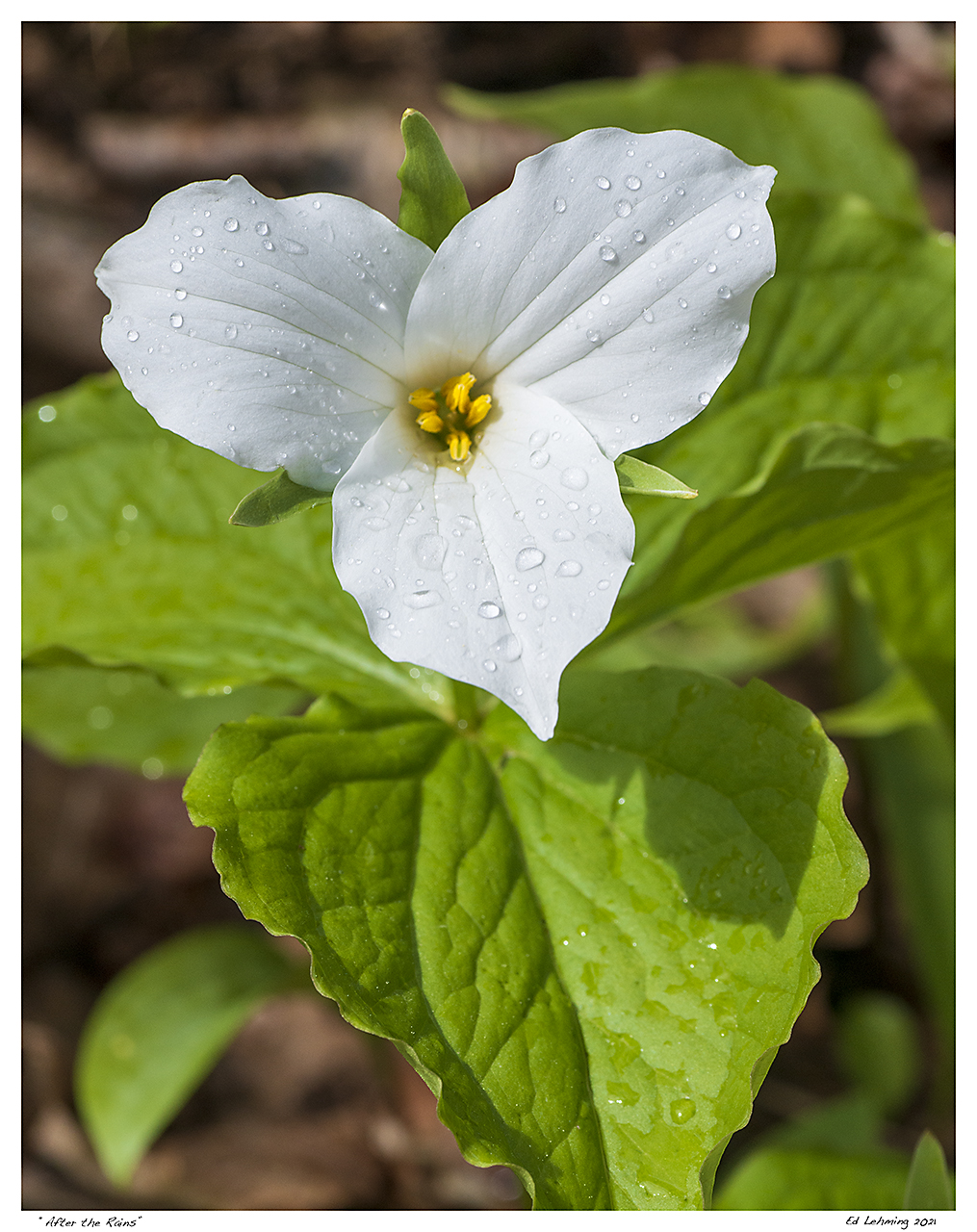 “After the cool spring rains, sunshine dazzles through the still open canopy, bathing the forest wildflowers with its warming light, transforming the recently dull forest into something magical and alive.” – Ed Lehming