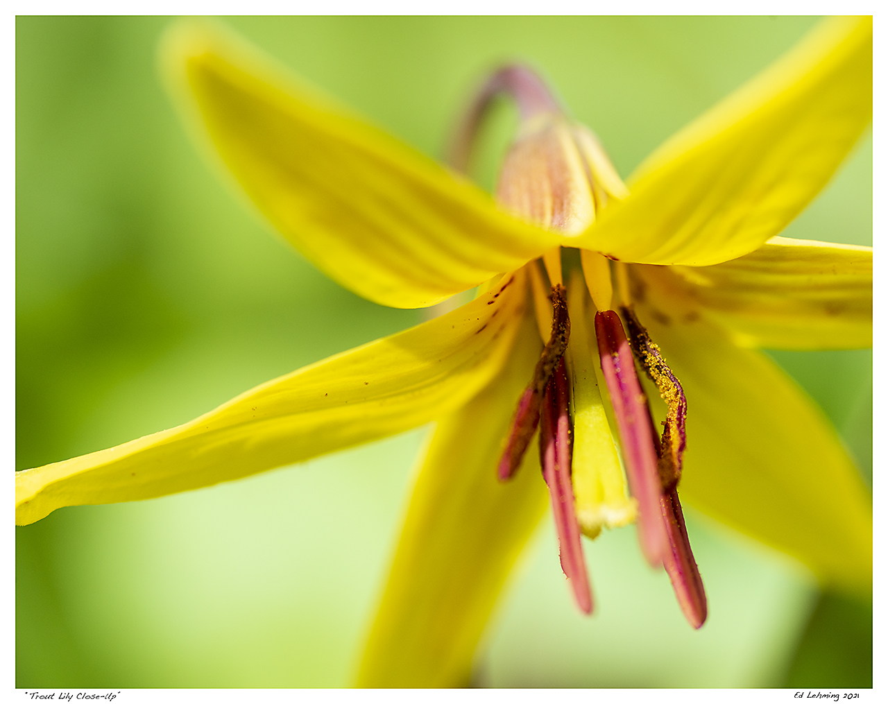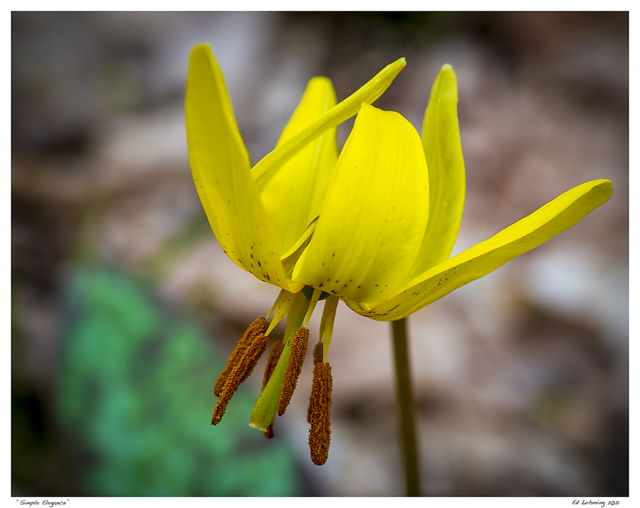 “Simple, yet complex, the flower of the Trout Lily continues to bring me joy as they appear in greater numbers daily. I can hardly decide which I like best.” – Ed Lehming
