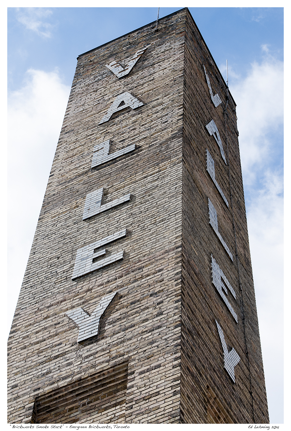 A second post today from Evergreen Brickworks, in Toronto. This smoke stack stands in the middle of this reclaimed brickworks. It was stood as a silent sentinel through the life of the brickworks. I like the strong lines and signs of age in this interesting monument to the location’s industrial past, now converted into a community park, market, and meeting place.