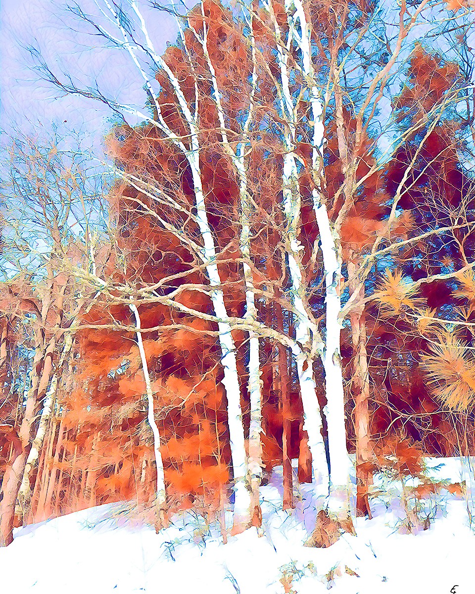“Hints of colour on crisp winter days inspire me to look for more, to imagine the world alight with brightness” – Ed Lehming I’ve found myself stretching and experimenting with my photos lately, not satisfied with the image, “as-is” but wanting to expand it, to glean more than the base photo offers me. I’m taking the bright elements of the photo; the bright birch bark, the warm orange and copper of the… Read More