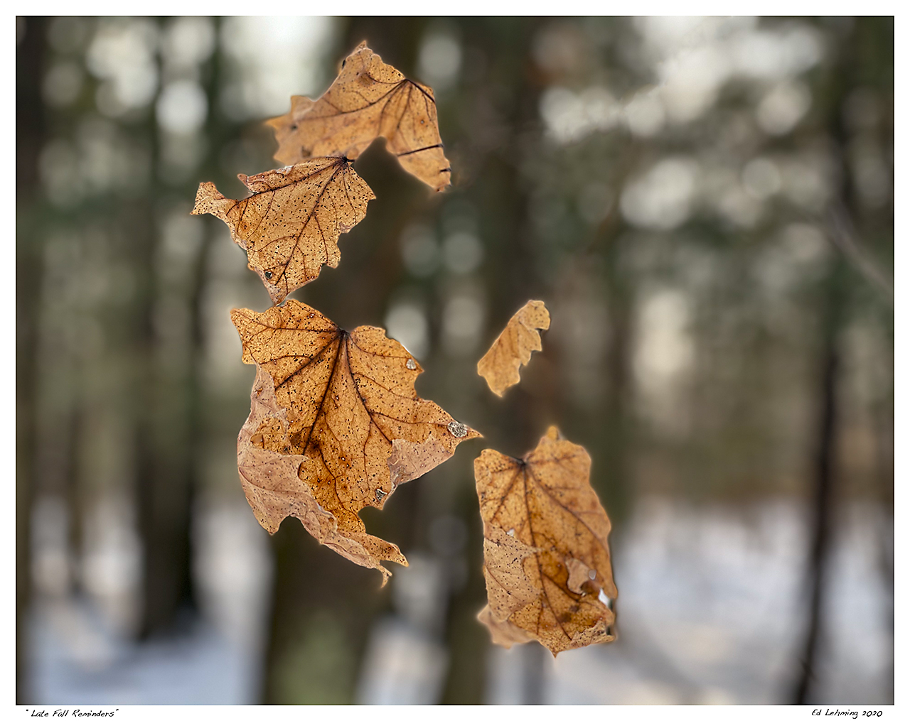 “As winter approaches, remnants and reminders of autumn persist, adding colour to the gradual toning down to winter whites.” – Ed Lehming This image was a fortunate combination of two factors: convenient compositional angle and a very wide aperture on my new Iphone 12 Pro. The compositional angle is due to me trying to get the cluster of leaves lined up to my satisfaction, which put all the stems behind the leaves… Read More