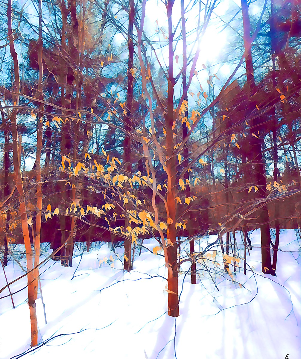 “Droplets of orange hang on fragile branches laden with heavy snow, like splashes of sunshine, competing for my attention with the white brightness of the new fallen snow” – Ed Lehming As I consider winding down my recent series of re-imagined photos, I keep coming across a few gems that I had overlooked, most of them featuring beech trees and their glorious winter foliage. They seem to have become my focus over… Read More
